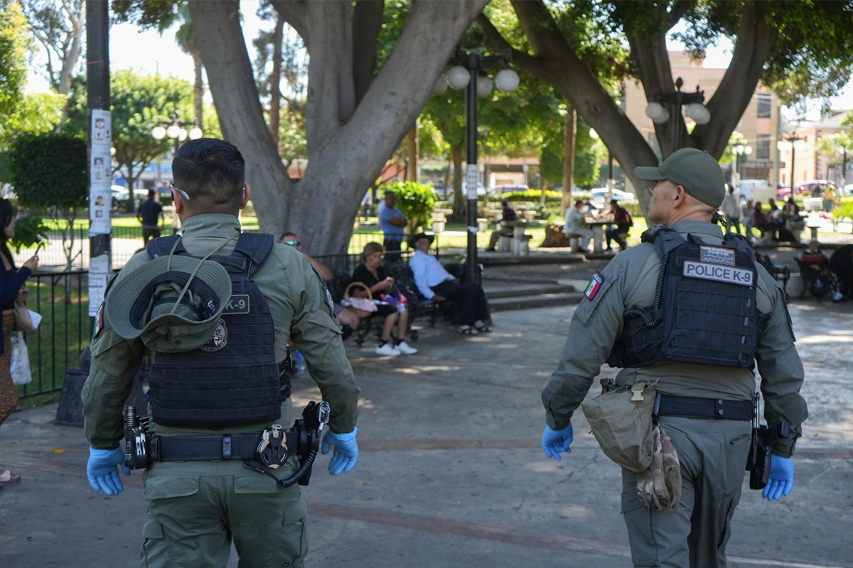 Durante la operación participaron binomios caninos, que colaboraron en la revisión de vehículos y en recorridos a pie por el parque Teniente Guerrero. En ese punto, las autoridades retiraron a varias personas que infringían el Bando de Policía y Gobierno.