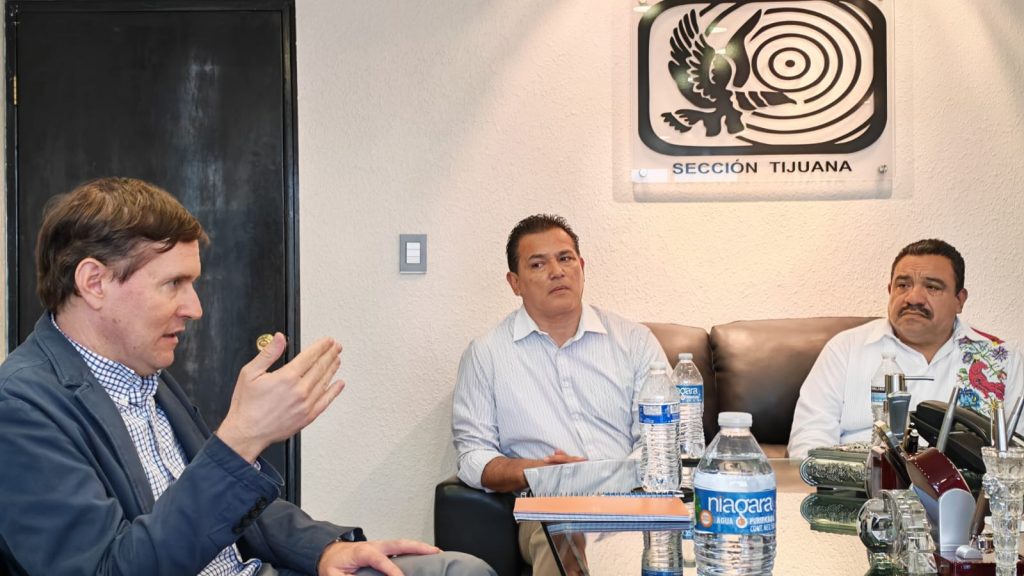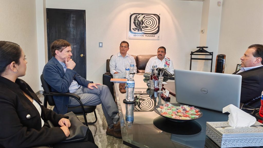 En Tijuana se llevó a cabo un encuentro binacional en defensa de los derechos laborales, en el que participó el regidor Arturo Aguirre, acompañado de dirigentes sindicales y representantes del gobierno de Estados Unidos. La reunión se realizó en las instalaciones del Sindicato de Trabajadores de la Industria de la Radio, Televisión y Telecomunicaciones (STIRTT).