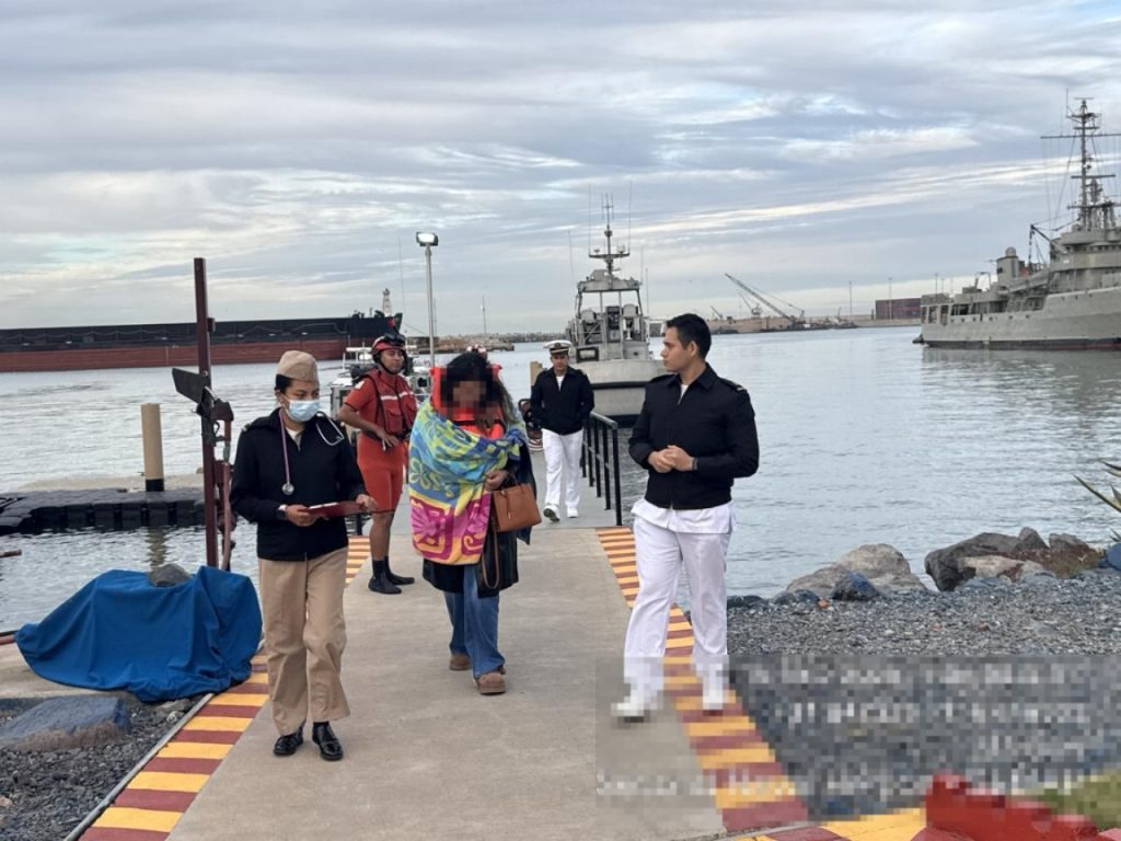 Al arribar a instalaciones navales, personal de Sanidad Naval realizó la valoración médica correspondiente, determinando que la mujer se encontraba en buen estado de salud, por lo que posteriormente se retiró por sus propios medios.