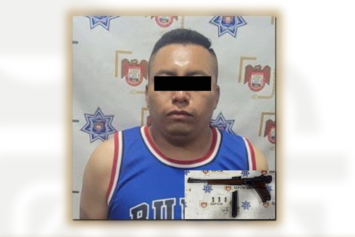 Los agentes entablaron diálogo mediante comandos verbales hasta lograr que el sujeto dejara el arma, asegurando así la integridad de las víctimas. El individuo, identificado como Hugo “N”, de 32 años, fue detenido y se le confiscó un arma de fuego calibre .22 abastecida con tres cartuchos útiles.
