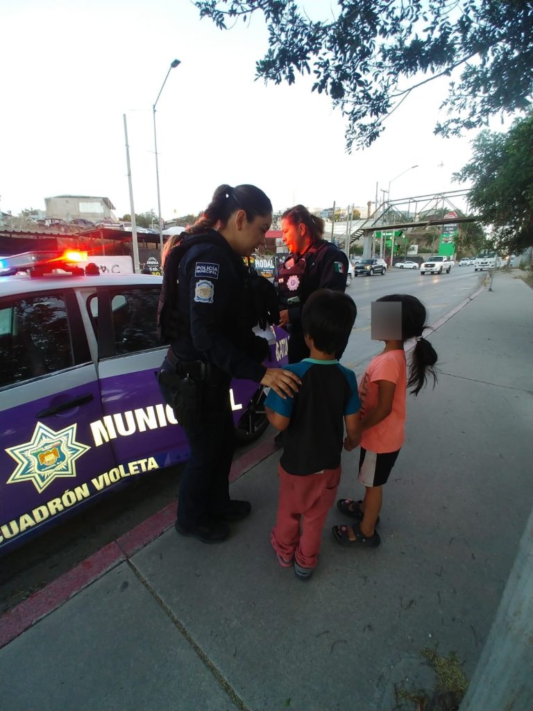 Dos hermanos, una niña de 5 años y un niño de 7, fueron rescatados por el “Escuadrón Violeta” de la Policía Municipal tras ser encontrados deambulando solos y en condiciones de descuido en la calle Teresa García y Constituyentes de la colonia Sánchez Taboada.