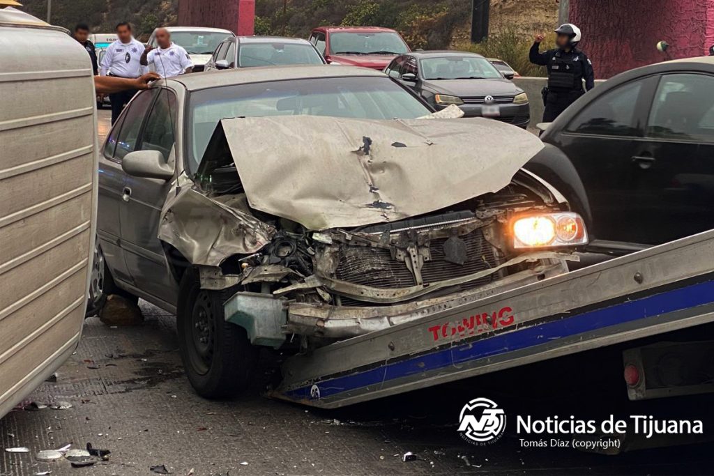 La colisión ocurrió alrededor de las 07:30 horas, cuando la conductora de un automóvil Nissan Sentra colisionó en contra del taxi de la ruta Playas de Tijuana-Zona Centro, con número económico 16831, a la altura del puente del Mirador, hasta alojarse a metros del acceso a la colonia.