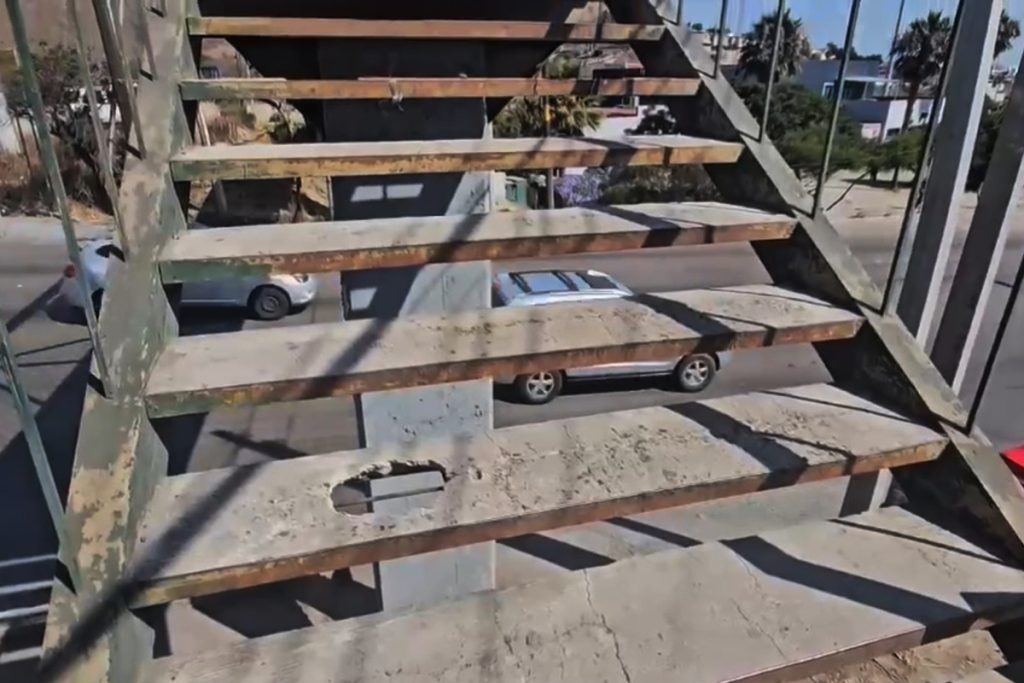 El Ayuntamiento de Tijuana realizará la remoción de las escaleras del puente peatonal sobre el Libramiento Salvador Rosas Magallón, en la colonia Camino Verde, con el fin de adecuar la estructura a la normativa federal.