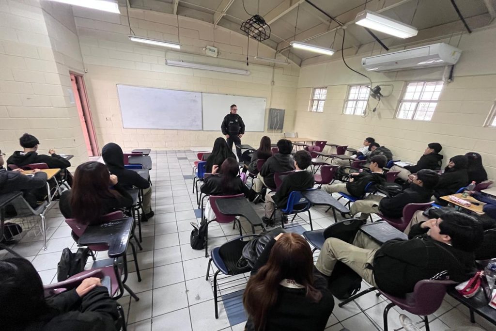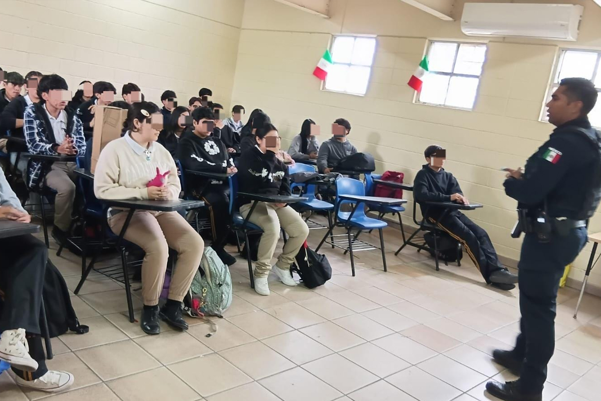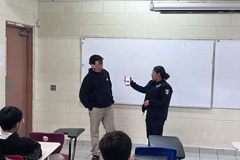 Elementos de Prevención del Delito informaron a estudiantes sobre el uso del 9-1-1, el Botón de Emergencia y el Botón Morado para reportar situaciones de riesgo. De acuerdo con registros oficiales, no se presentó denuncia relacionada con el incidente, pese a que en el video se observa a un menor con un objeto similar a un arma.