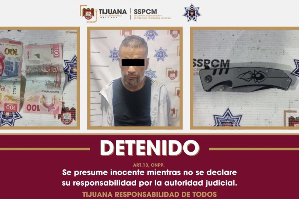 TIJUANA, BC, (NDT).- De acuerdo con el reporte, los oficiales realizaban un recorrido de vigilancia cuando una persona pidió ayuda y señaló directamente a un individuo que huía a pie sobre la avenida Juan Ojeda Robles, indicando que momentos antes lo había amenazado con una navaja dentro de su negocio, identificado como Cafetería KYOTO, para despojarlo de dinero en efectivo.