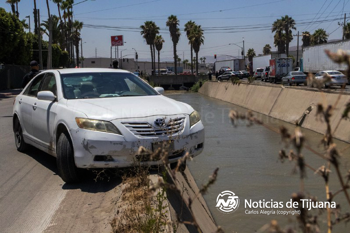 La escena donde concluyó el operativo llamó la atención de personas que circulaban en los alrededores debido a que la unidad Toyota Camry quedó con el frente expuesto hacia la canalización.