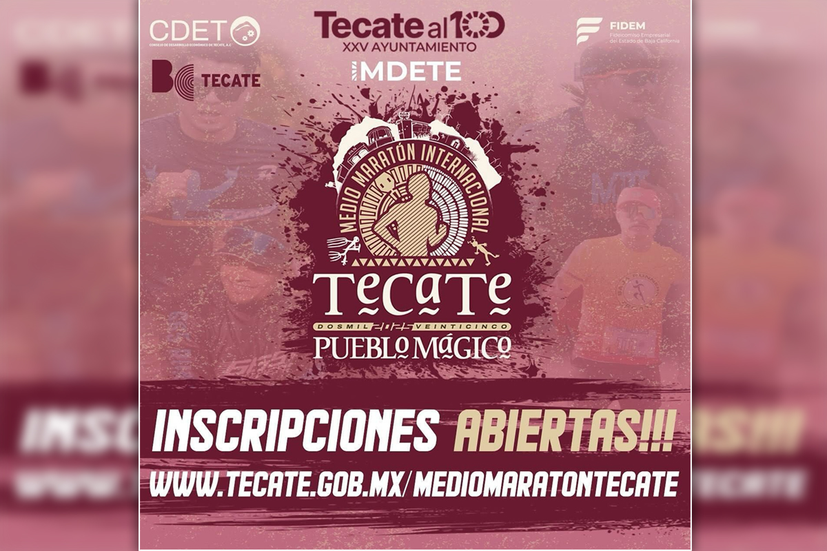El Gobierno de Tecate, a través del Instituto Municipal del Deporte (IMDETE), invita a corredoras y corredores de la región y del extranjero a participar en el Medio Maratón Internacional Tecate – Pueblo Mágico 2025, que se llevará a cabo el próximo 12 de octubre con salida a las 6:30 a.m. desde la Unidad Deportiva Eufrasio Santana (UDES).