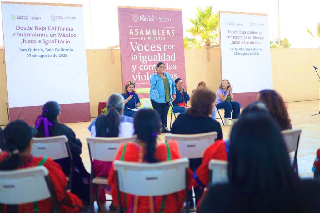 La titular de la Secretaría de las Mujeres, Citlalli Hernández Mora, encabezó en San Quintín el Encuentro por los Derechos de las Mujeres Jornaleras, con el objetivo de conocer sus necesidades y experiencias laborales.