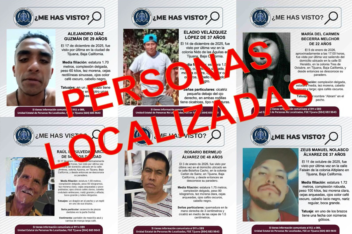 Agentes estatales de investigación localizaron a seis personas que contaban con reporte de desaparición en el municipio de Tijuana.