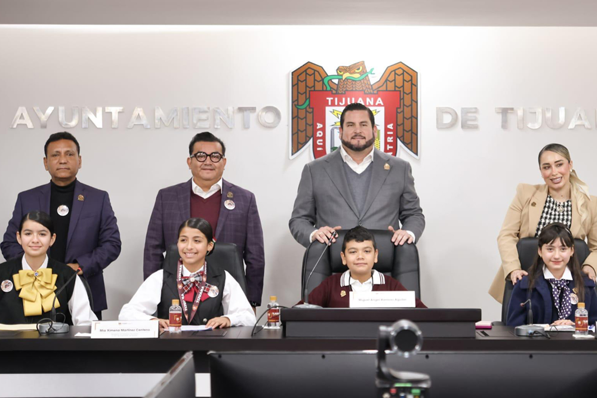 El alcalde, Ismael Burgueño Ruiz, acompañó al niño Miguel Ángel Ramírez Aguilar, presidente municipal Honorario del XXV Ayuntamiento de Tijuana, a encabezar la sesión extraordinaria de Cabildo Infantil, en la cual se aprobaron por unanimidad diferentes acuerdos relativos a la alimentación saludable como un derecho de las niñas, niños y adolescentes.