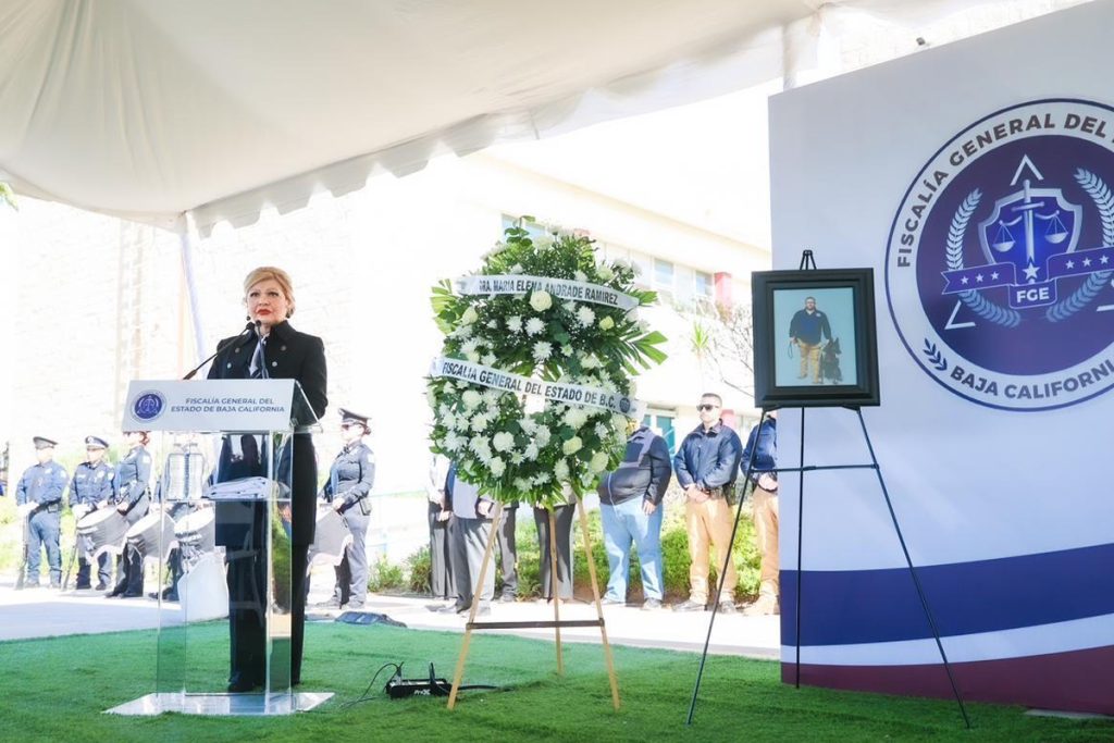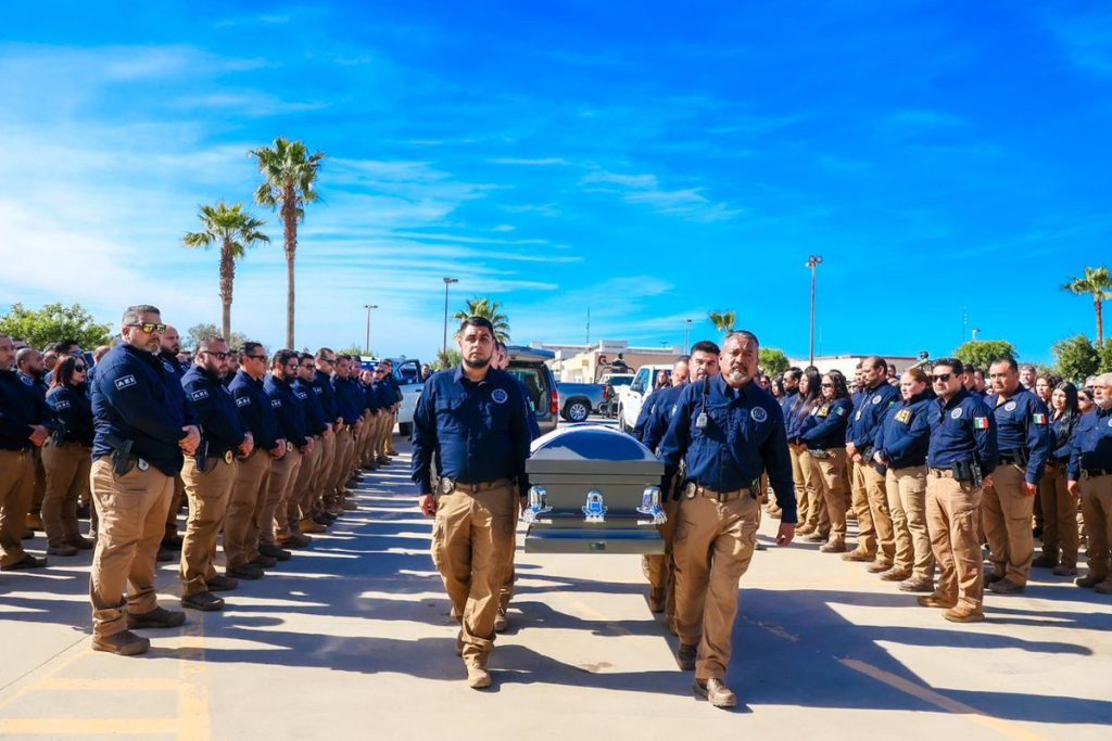 La Fiscalía General del Estado realizó una ceremonia de honras fúnebres en memoria de Israel Ortiz Castillo, subcomandante operativo de la Agencia Estatal de Investigación en Ensenada, quien contaba con 15 años de servicio dentro de la institución.