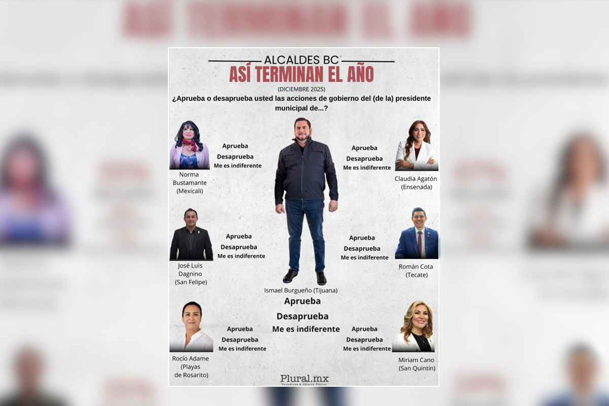 De acuerdo a la última encuesta de percepción ciudadana que el equipo de PluralMx, levantó durante la primera semana de Diciembre, Ismael Burgueño Ruíz es quien lleva la delantera en cuanto a los niveles de aprobación entre los alcaldes bajacalifornianos.