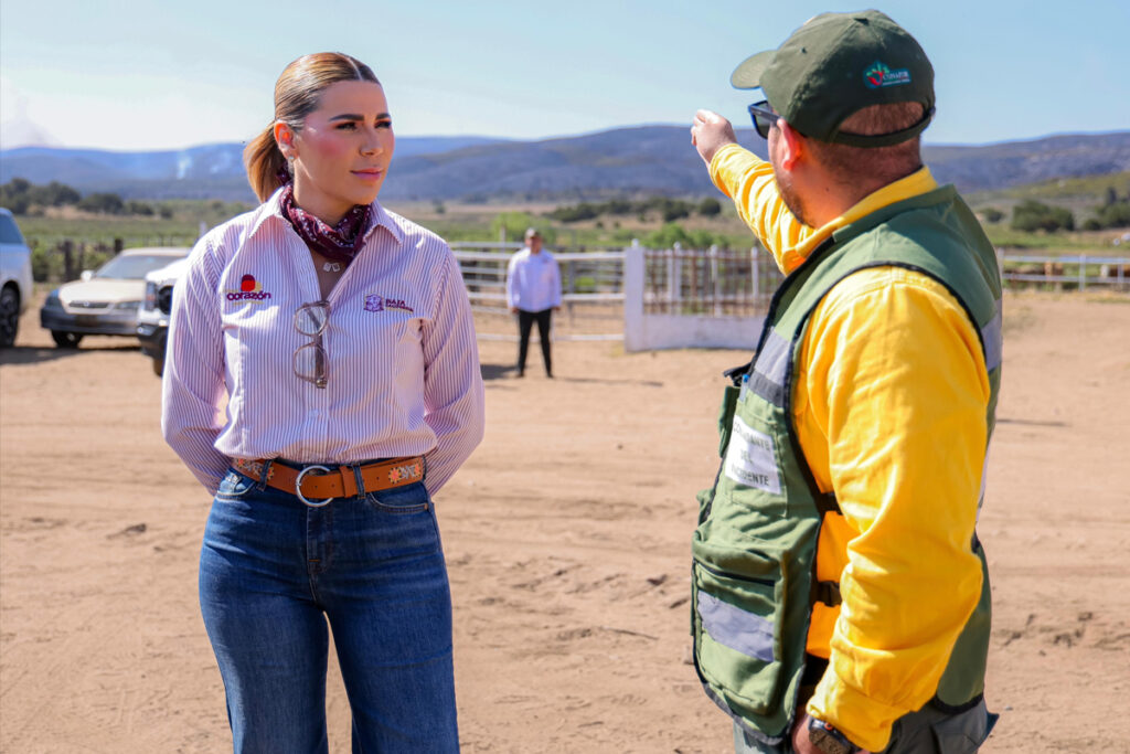Desde el puesto de mando instalado en la zona del incendio Guadalajara 2, en Tecate, la gobernadora Marina del Pilar Avila Olmeda supervisó las tareas de combate al fuego, que continúa activo, donde reconoció la labor del personal de emergencia y llamó a la ciudadanía a mantenerse alerta.
