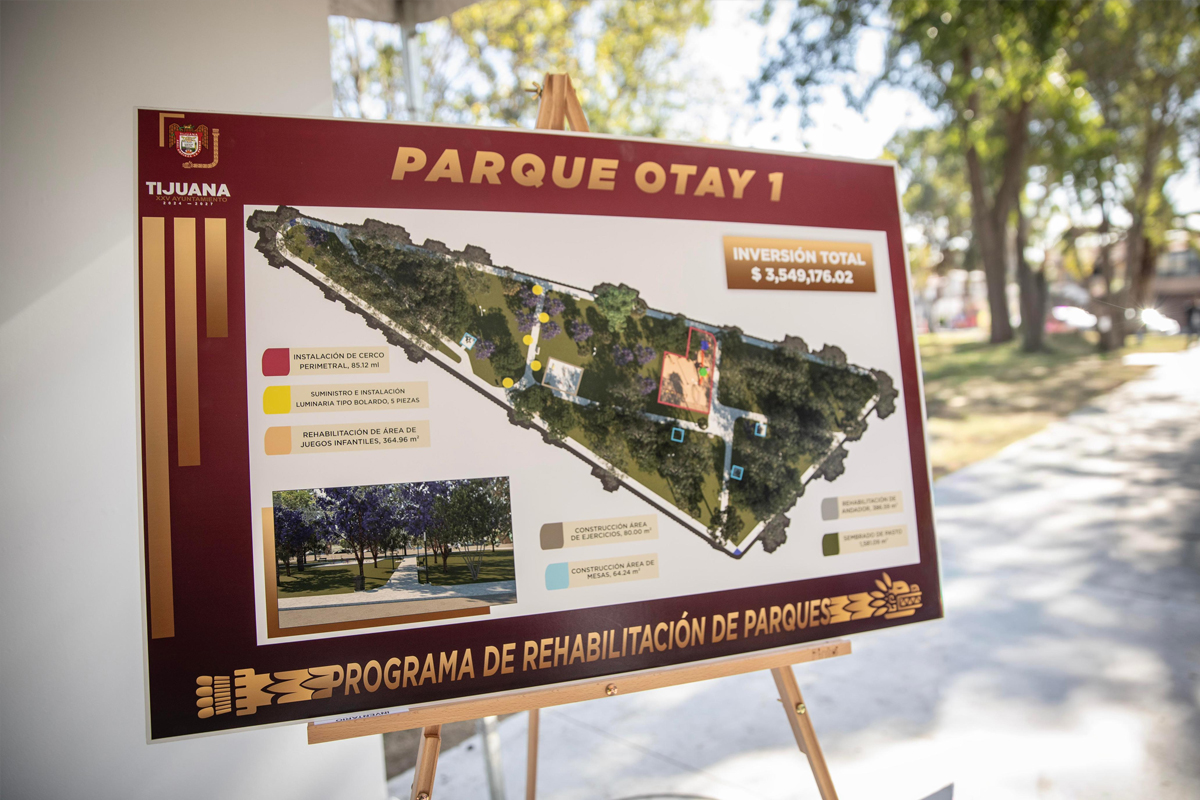 El presidente municipal, Ismael Burgueño Ruiz, supervisó los avances de la rehabilitación del Parque Otay I, en el fraccionamiento Otay Universidad, como parte de las acciones para fortalecer los espacios públicos, promover entornos seguros para las familias tijuanenses y mejorar la infraestructura urbana de la ciudad.