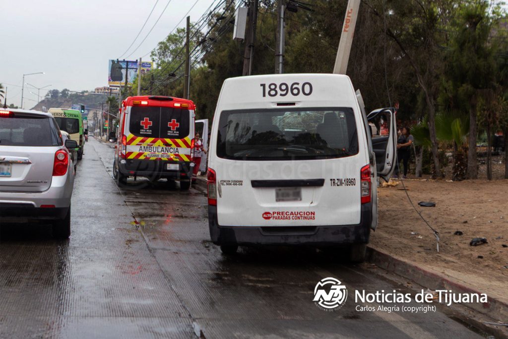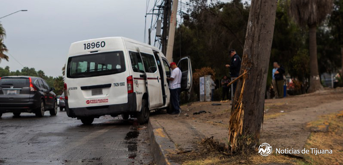 En su trayectoria, el transporte público primero se impactó contra un poste de madera que quedó quebrado cerca de la base, hasta terminar su recorrido de un encontronazo contra un poste de concreto a pocos metros de distancia.