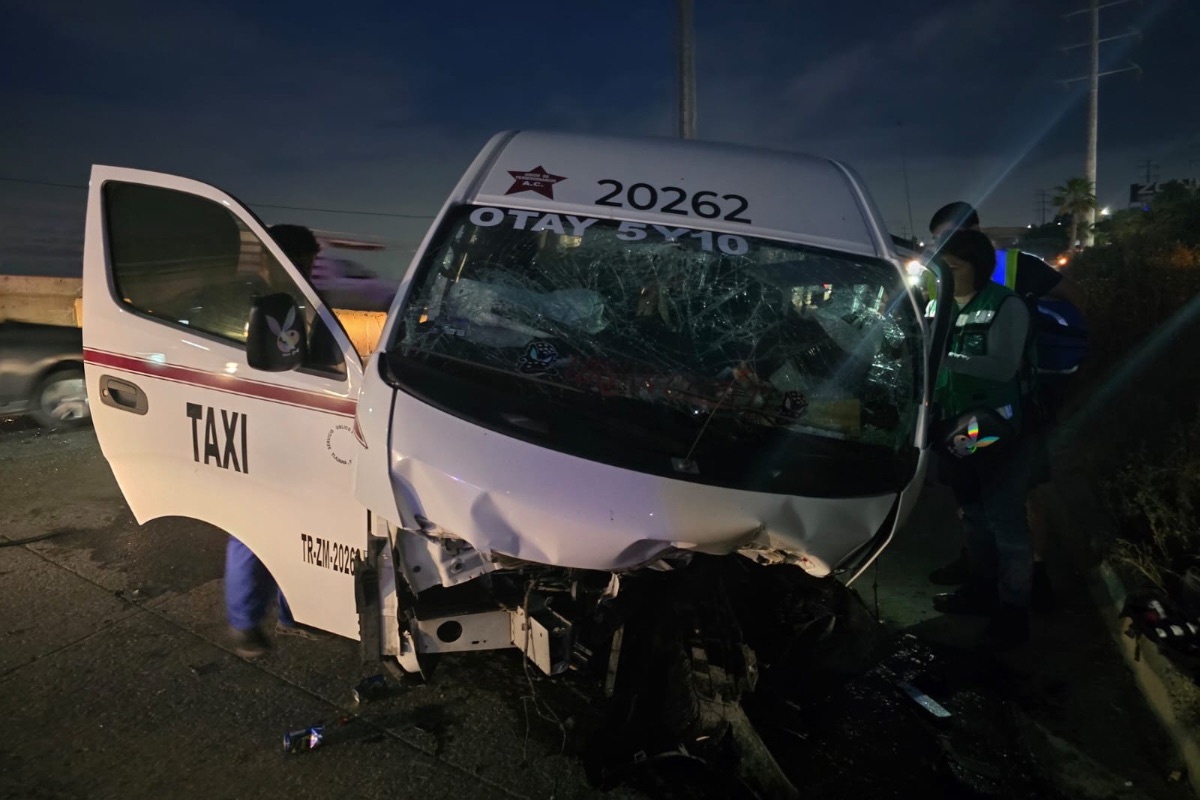 Un taxi de transporte público se impactó la noche de este lunes 30 de marzo contra la base de concreto del puente elevado en el Nodo Morelos, sobre el libramiento Salvador Rosas Magallón, dejando como saldo al conductor lesionado.