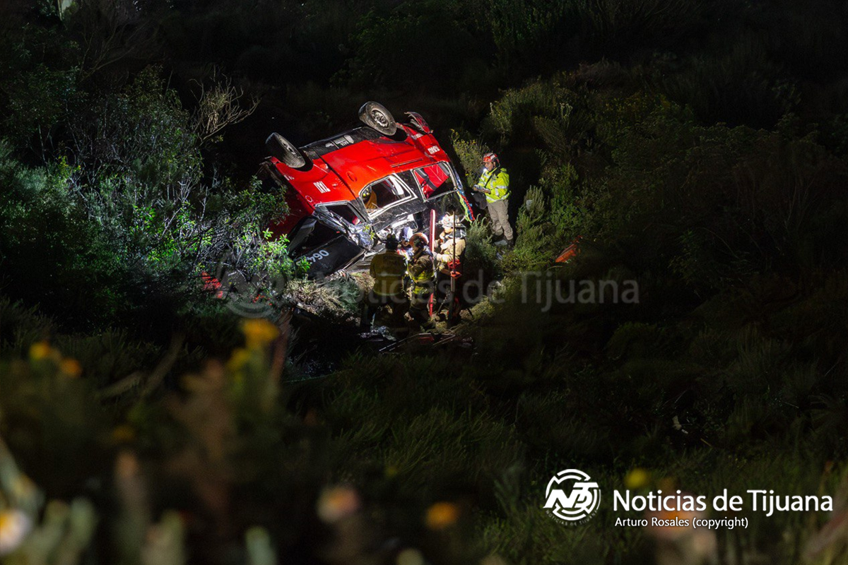 De acuerdo con los primeros reportes, el vehículo se impactó inicialmente contra un señalamiento vial, lo que ocasionó que la llanta y la horquilla se desprendieran. Sin control, la unidad avanzó varios metros más, derribó un poste de concreto y finalmente cayó entre 30 y 35 metros hacia un barranco, donde quedó prácticamente destrozada.