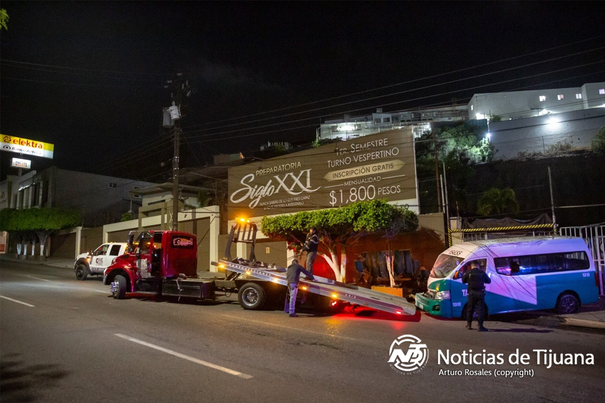 Tijuana. BC. (NDT).- Un taxi de ruta terminó incrustado contra la preparatoria Siglo XXI, en la zona de El Rubí, luego de que su conductor perdiera el control y huyera del lugar.