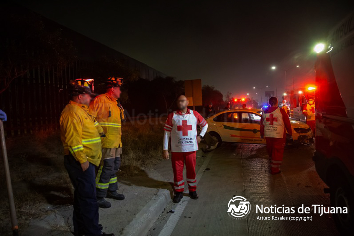 El automóvil fue embestido por un coche particular manejado por una trabajadora aérea que se dirigía a su turno laboral; el impacto provocó que el conductor del taxi perdiera el conocimiento dentro del vehículo.