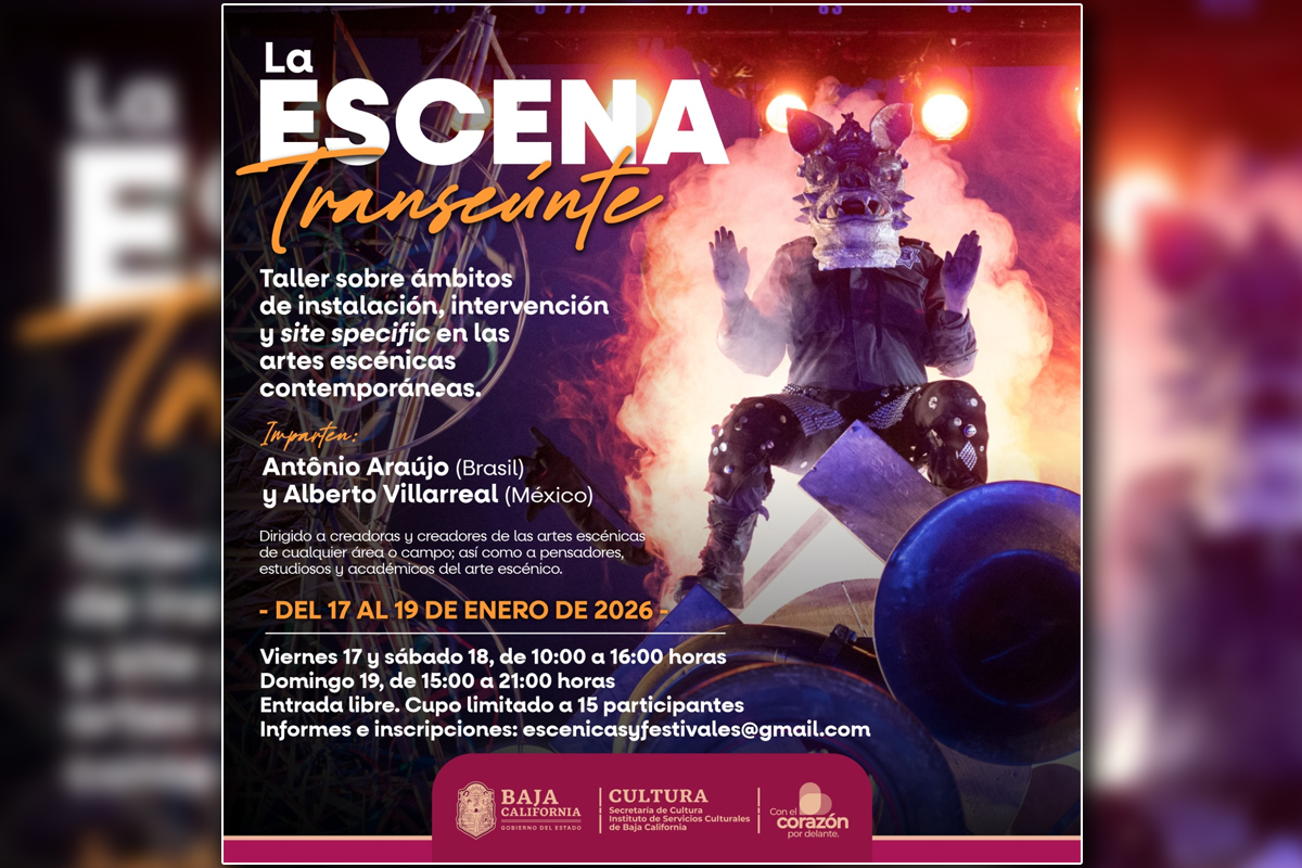 El taller se realizará del 17 al 19 de enero en el Multiforo del Instituto de Servicios Culturales de Baja California, con sesiones el viernes y sábado de 10:00 a 16:00 horas, y el domingo de 15:00 a 21:00 horas. Será gratuito, con cupo limitado a 15 participantes, quienes deberán registrarse previamente.