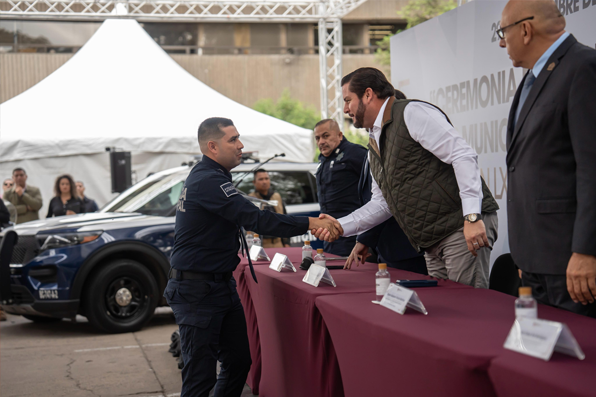 Durante el acto, Burgueño Ruiz destacó la importancia de honrar el uniforme y actuar siempre con profesionalismo, legalidad y respeto hacia los derechos de la ciudadanía. Señaló que fortalecer a la corporación no solo implica equipamiento y tecnología, sino también garantizar condiciones laborales seguras y certidumbre para los elementos.