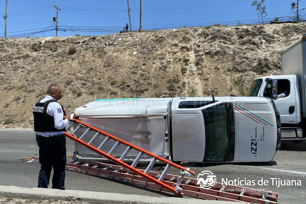 El conductor de una unidad móvil de la compañía IZZI sufrió una volcadura en el bulevar 2000, la tarde del miércoles 25 de junio, a la altura del fraccionamiento Paseos del Vergel, en dirección hacía Plaza Sendero.