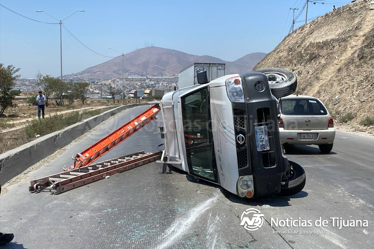 Testigos indicaron que, la unidad de la compañía digital circulaba en zigzag por líquidos derramados, motivo por lo que al reducir la velocidad, fue impactada por otro vehículo, por lo que perdió el control y terminó en volcadura