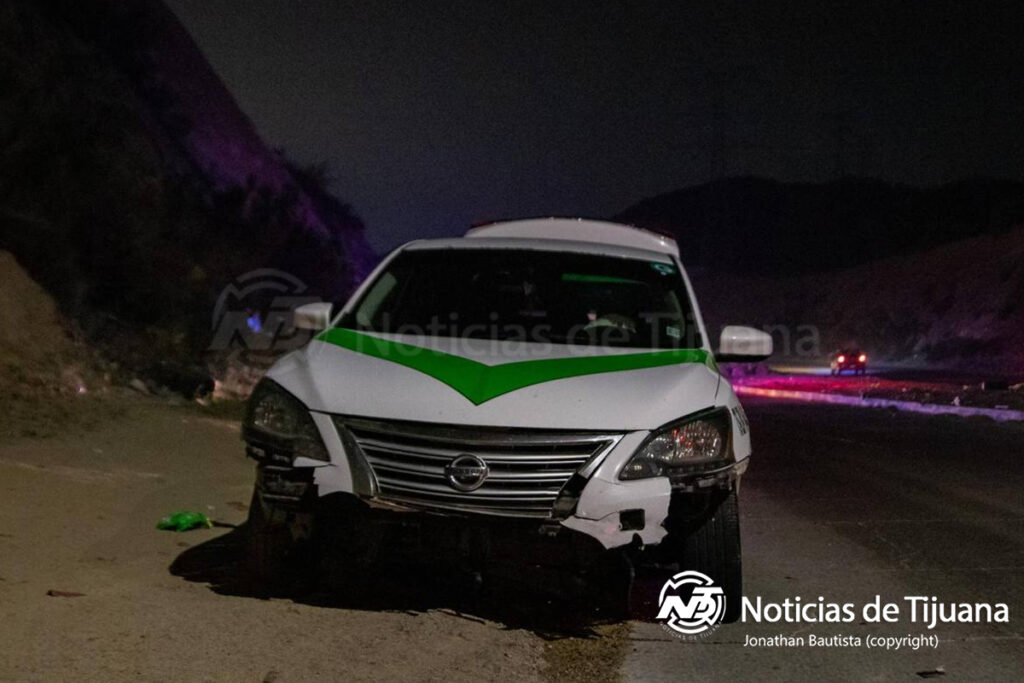 Simultáneamente, un taxi Nissan Sentra que venía detrás también colisionó con la vaca, pasando por encima de ella. Este impacto destruyó la defensa delantera y parte de la estructura inferior del vehículo.