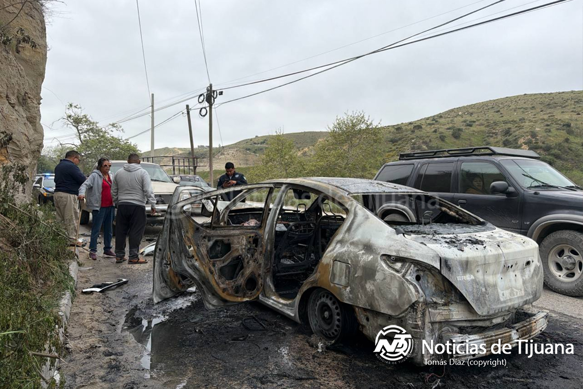 Minutos después del choque, el Nissan Versa comenzó a incendiarse. Elementos del Cuerpo de Bomberos acudieron para sofocar las llamas, pero el vehículo quedó en pérdidas totales.
