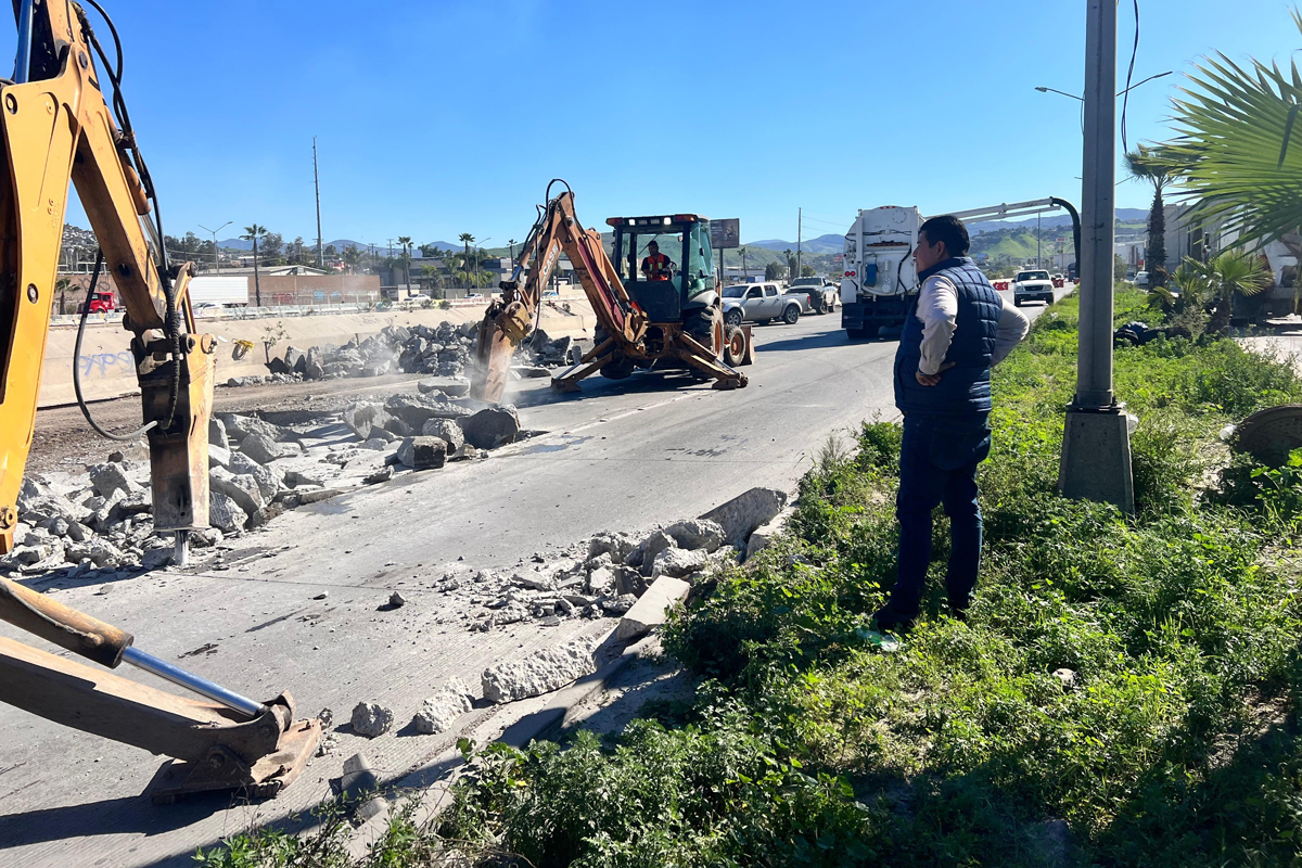 Ante las obras de reparación de un socavón en la Vía Rápida Poniente, a la altura del Centro Industrial Los Pinos, el XXV Ayuntamiento de Tijuana recomendó a las y los automovilistas utilizar el bulevar Insurgentes como ruta alterna para reducir congestionamientos en la zona.
