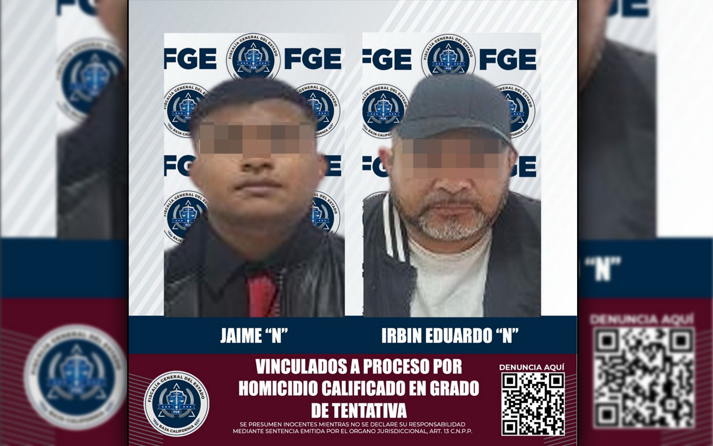 Como resultado del trabajo coordinado entre la Fiscalía Especializada en Delitos Contra la Vida y la Agencia Estatal de Investigación, se logró la vinculación a proceso de Jaime “N”, alias “El Mocho”, e Irbin Eduardo “N”, por su presunta participación en el delito de homicidio calificado en su grado de ejecución de tentativa.