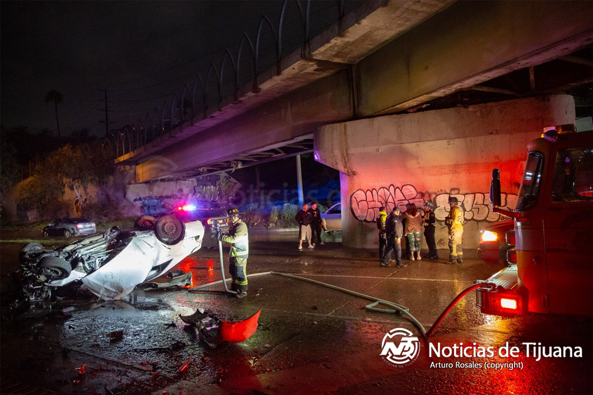 De manera preliminar, se informó que el exceso de velocidad, combinado con el pavimento mojado por la lluvia, habría provocado que el conductor perdiera el control del automóvil al tomar una curva, lo que derivó en el fuerte choque y posterior volcadura.