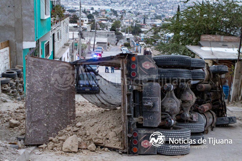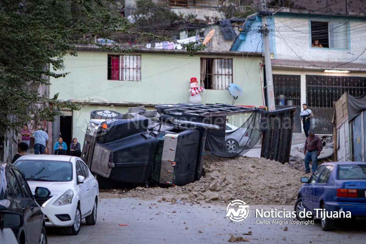 Un camión de carga pesada que transportaba tierra volcó la tarde de este jueves en la colonia Mariano Matamoros Norte, generando un cierre total de la vialidad y una amplia movilización de los cuerpos de emergencia.