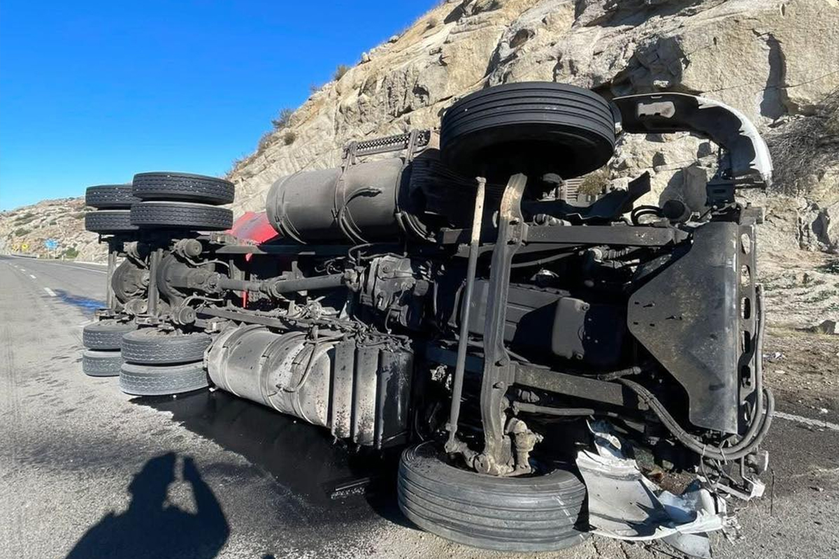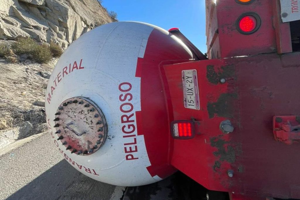 Una pipa de gas volcó la mañana del jueves 16 de octubre sobre la autopista de cuota que conecta El Hongo con Tecate, a la altura del kilómetro 107, en el tramo descendente.