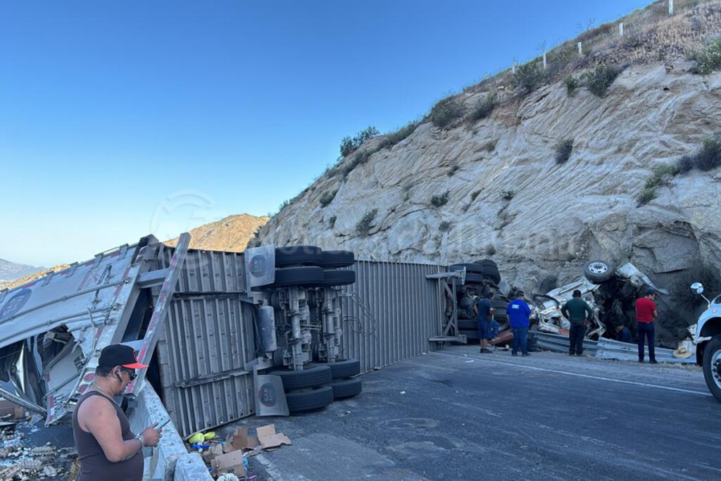 La mañana del viernes 30 de mayo, alrededor de las 7:10 horas, un tractocamión que transportaba abarrotes volcó en el kilómetro 107 de la carretera Mexicali-Tijuana, en el tramo con dirección a Tijuana, lo que obligó al cierre temporal de la circulación en ambos sentidos para facilitar las labores de rescate.