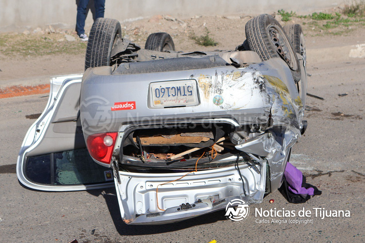 Un aparatoso accidente se registró la tarde del lunes 22 de noviembre, sobre el bulevar 2000, a la altura del túnel que conduce a Residencial del Bosque, luego de que un Chevrolet Cobalt volcó tras impactarse con dos camiones de reparto.