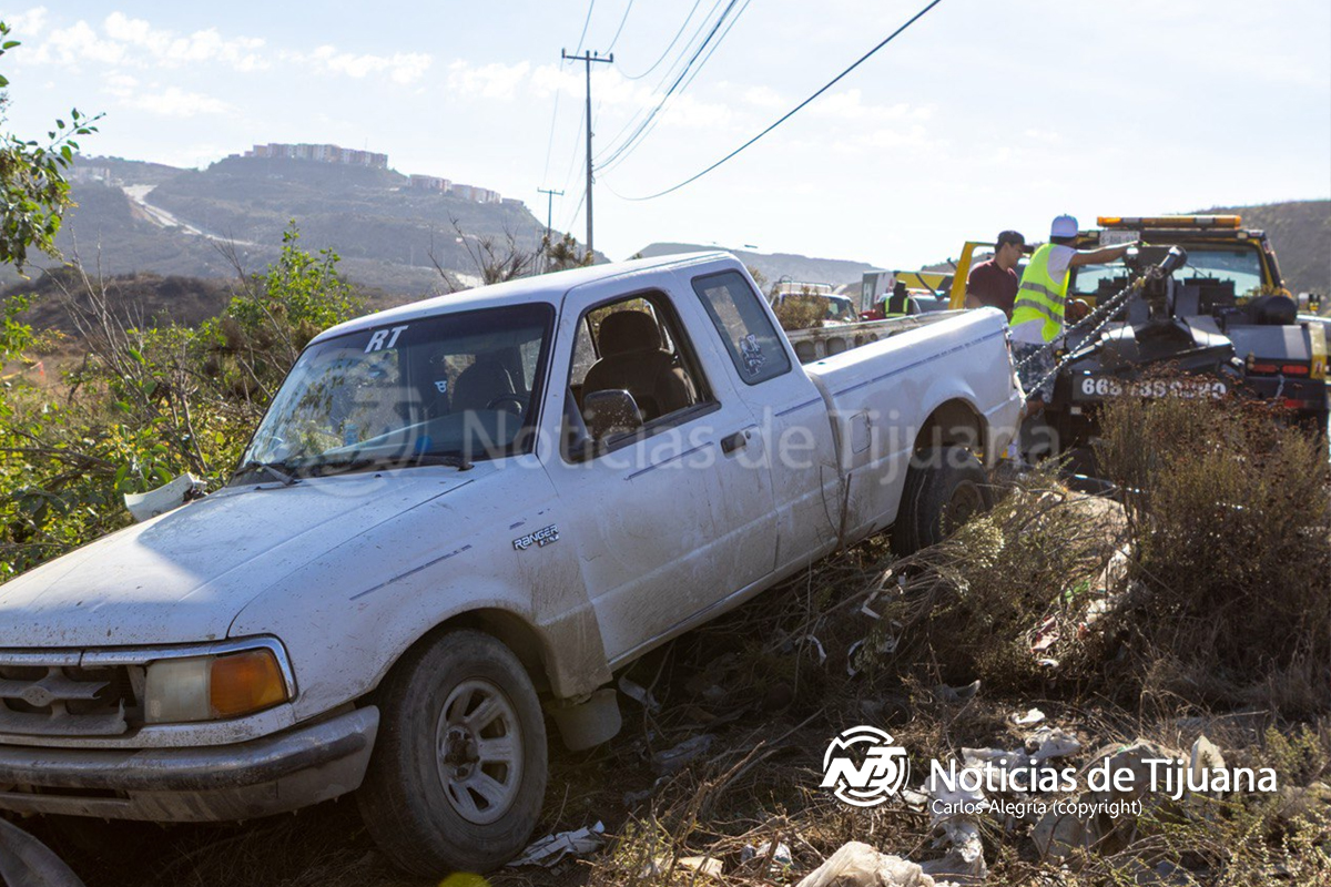 Un vendedor de agua que conducía una camioneta Ford Ranger color blanca perdió el control de su vehículo cuando circulaba sobre el bulevar 2000, lo que provocó que saliera del camino y volcara a un costado de la vialidad.